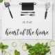 Personalize design featuring kitchen utensils and the quote, "kitchen is the heart of the home."
