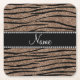 Personalize name brown glitter zebra stripes square paper coaster