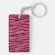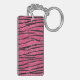 Personalize name fuchsia pink glitter zebra stripe keychain
