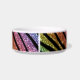 This is a heavy, durable bowl decorated with Tibbies of many colors, the perfect size for hungry/thirsty Tibs. The design is interesting and printing clear.