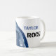 Cool Popular Black an BLUE text on a White background Classic style coffee tea mug.