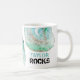 * Personalize NAME ROCKS - Pastel TURQUOISE NAVY BLUE GREEN TEAL WATERCOLOR and GOLD GLITTER on the PASTEL AGATE Coffee Mug with Black Polka Dot Heart.