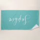 Personalize Name White Script Vertical, Light Teal Beach Towel
