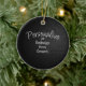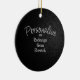 Lightweight, smooth, pure white ornament with nice sheen. Perfect size to be seen from across the room ... and to attract closer inspection! Price was great for ordering enough for the whole family! Clear, bold black design just as requested. Matches the order exactly. Just so nice!