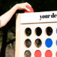 Our very popular Giant Fast Four game is fun for all ages! Take your lawn games to the next level with this all-wood construction. The game comes with red and blue discs to play and is suited for both indoor and outdoor use. It disassembles for easy transport and includes a carry bag.
