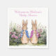 Personalize this Peter the Rabbit and Flopsy in their flower garden baby shower design