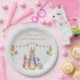 Personalize Peter rabbit gray linen 1st Birthday Paper Plates