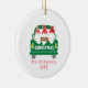 Photo personalized Christmas ornament with three adorable gnomes in a green truck. Personalized the front of this ornament with families last name and year and add a photo to the back.