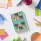 I was super excited when I got my cover in. It is attached by a magnet across the edge. I don’t think it will be very protective but it is very cute. I’m going to keep my iPad in a sleeve and use this face cover while I have it out. It folds to create a tilt for better viewing and to keep the iPad at a slight angle for typing. The colors are bright and it is fun. I’ve really enjoyed it. The personalization looks like amazing. It is the same color as the picture and is the same brightness. Well done! Very nice.