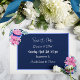 Personalized wedding Save the Dates with pretty watercolor pink and blue flowers with white font. Elegant floral wedding theme. Add couple's photo in the personalize area.