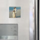 It was a bit smaller than expected, but I was too excited to check dimensions. The product itself send well printed though the grey text is a bit paint. Magnet worked perfectly on my fridge.