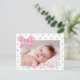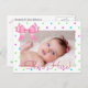 "She's Here" pink, purple, green polka dotted birth announcement for baby girl birth announcement for new parents! Let everyone know in an affordable and personalized way that your baby girl has arrived!