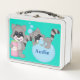 This is a standard metal lunchbox that appears to work just fine. We designed this box ourselves with an uploaded photo and custom text on the front and back. It looks absolutely beautiful except the front of the lunchbox is not centered like it shows in the photo. The print borders don't align with the inset flat part of the box where the preview photo online showed it perfectly centered in there. The back looks nice and centered though.