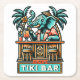 Personalize Retro Elephant Tiki Bar Square Paper Coaster