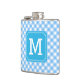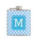Personalize Stylish Baby Blue Gingham Monogram Flask