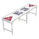 Not that I've had experience to buy that many beer pong or ping pong tables in my life, but I know a good quality product when I see it! This beer pong table is sturdy and solid and still lightweight enough to be portable. It folds and unfolds smoothly for easy storage or setup. From order to arrival here, the time was half of what was estimated, and that was during the holiday season. And -- most importantly -- the recipient LOVED it! I would definitely purchase this product again or other products by the maker Hampton Technologies , should an occasion to do so arise. The printing is beautiful! The blues and reds are deep and rich and the white "chalk look" is clean and crisp,. The photo (taken in low light) doesn't really do it justice. We know it's printed, but take a step back, and it really does look like chalk on a blackboard. To get the blue background like we did (instead of the traditional green chalkboard background), use background color #26306A. :)