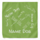 I really like this bandana. It is a little small, but it's made of t-shirt material so it stretches. I tie mine before I put it on which makes it easier since it is small. Once it's on, it NEVER comes untied and I rarely have to redo the knot. The printing is as shown. Crisp and clear borders.