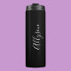 Personalize Vertical Name in White Script on Black Thermal Tumbler