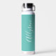 Personalize Vertical Name White Script, Lt. Teal Water Bottle