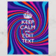 Your personalized Keep Calm saying on a vibrant multicolored swirl decor. A personalized Keep Calm style saying on a one of a kind gift. Humorous or whimsical try on your creative words on two editable lines of text. Remember to use CAPITAL letters for best results.