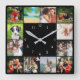 Personalized 12 Family Photo Collage Black Square Wall Clock