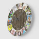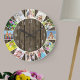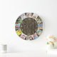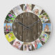 Personalized 12 Photo Collage Dark Wood Round Large Clock