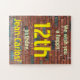 This customized birthday themed puzzle design features a message like "We wish you a happy 12th birthday, Jean-Carlos!", where the name and birthday number can be customized. A birthday puzzle like this could be used to send a birthday greeting to somebody who is celebrating their birthday.