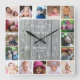 Personalized 16 Photo Collage Rustic Gray Wood Square Wall Clock