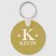 To personalize with name and initial... a stylish single-letter-monogram design on ocher yellow background with custom words 'house keys'