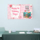 Pretty pink floral and polka dot quilt pattern first birthday theme for a baby girl. Personalize this birthday banner by adding your baby's photo and name in the customize area.