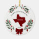 Personalized 1st Christmas In Texas State Red and Green Holiday Ceramic Ornament