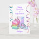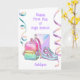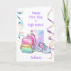 A personalized 1st day of high school card for her. The front features a backpack, notebook and cute shoes along with some colorful streamers on the front of this first day of school card for her. You will be able to easily personalize the front with her name and the inside card message so it's truly a one of a kind card keepsake for your daughter, granddaughter, sister, etc. This is a wonderful way to support and encourage her when starting high school.