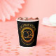 Personalized 2024 TOTAL SOLAR ECLIPSE Paper Cups in BLACK, with CUSTOMIZABLE TEXT, to celebrate the Total Solar Eclipse over Continental USA, Canada and Mexico in April 2024. The CUSTOMIZABLE TEXT reads TOTAL SOLAR ECLIPSE and [FAMILY NAME] Watch Party. You can use the top curved text field for a longer sentence if required (and delete the bottom curved text). The design shows a solar eclipse with gold-effect 2024 in the middle. Buy these solar eclipse Paper Cups for all the family or for your watch party guests! The totality will be totally worth it! Matching party supplies available. Also in white.