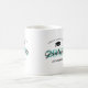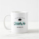 Personalized graduation mug featuring a graduates cap, the class year in a modern teal color, school name, students name, and the word graduate in a script font.