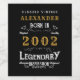 Personalized Birthday born in 2002 Add your name birthday wine bottle labels. Edit the name and year with the template provided. A wonderful custom black birthday idea. More gifts and party supplies available with the "Legendary" design in the store.