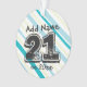 Customizable Unique 21st Bday designed Keepsake Ornament with colorful blue and green stripes and cool, grunge twenty-first text. Personalize striped themed Birthdays with a custom flair for a Big 21st Year Celebration for the 21 year old.
