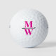 To personalize with your own two initial letters, one on top of the other (vertical oriented)... a stylish hot pink monogram design with a small golf-club between the letters.