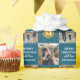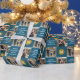 Personalized 2 Photo Monogram Blue Gold Holiday Wrapping Paper
