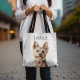 Enhance this white tote bag by adding a photo of your beloved pet and personalizing it with their name. Made from durable materials, this tote is perfect for carrying all your essentials. Complementary items are also available, making it an excellent gift option! Order now—it's the ideal accessory for any dog lover. Whether for a gift or a personal treat, this tote is perfect!