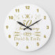 Great price for a very nice product. Arrived a day early - unheard of these days. The outside gold area has a little more orange tone to it than shown in the picture. Great packing so product can't get damaged. I used the same packing to forward the clock to my brother and sister-on-law for the 50th wedding anniversary. Printing was just as expected - lovely!