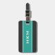 Personalized 3 letter monogram travel luggage tag. Sleek modern look. Classic turquoise and grey chevron pattern zig zag stripe design with white monogrammed name intitial letters. Elegant gift idea for men and women. Dark gray zigzag design.