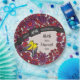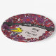 Here is a whimsical intricate floral themed 40th wedding anniversary paper plate that you can personalize for a special bride and groom! Two prothonotary warblers perch on a decorative floral pattern border made of flowers and artistic swirls in shades of red and purple. The birds sit beside a space for two names and a wedding year in script text.