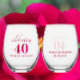 Personalized 40th Anniversary Ruby Rose Keepsake Stemless Wine Glass