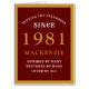 Personalized 40th Birthday 1981 Red Gold Huge Card