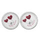 Personalized 40th ruby wedding anniversary cufflinks with a rose red heart balloon design.