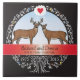 Celebrate the ruby wedding anniversary of your favorite nature loving couple with this customizable keepsake! White branches and birds on a black and red background surround a pair of white-tailed deer who are each thinking of a heart. Two names, number of years together, wedding year and current year are featured near the center and can be personalized. Perfect for a loving pair who love the outdoors too.
