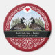 Celebrate the ruby wedding anniversary of your favorite nature loving couple with this customizable keepsake! Elegant white scrolls on a red background surround a pair of Canada geese who are each thinking of a heart. Two names, number of years together, wedding year and current year are featured near the center and can be personalized. Perfect for a loving pair who love the outdoors too.