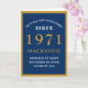 Personalized 50th Birthday 1971 Blue Gold Chic Card
