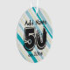 Customizable Unique 50th Bday designed Keepsake Ornament with colorful blue and green stripes and cool, grunge fifty text. Personalized themed Birthdays with a custom flair for a Big Fiftieth Year Celebration for the 50 year old.
