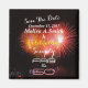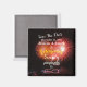 Save the date fridge magnet reminder with her personalized name and date and pink fireworks.
